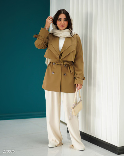 ترنچ کت زنانه جنس پردا پشت بلدینگ