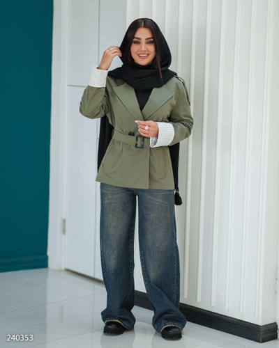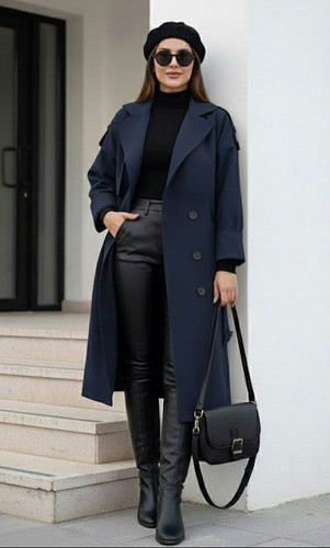 کت فوتر دورو کوبیده زنانه با کمربند چرم