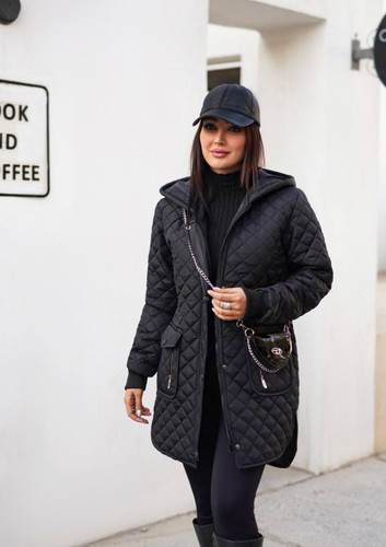 کاپشن زنانه کلاهدار امبوردی مموری بلند