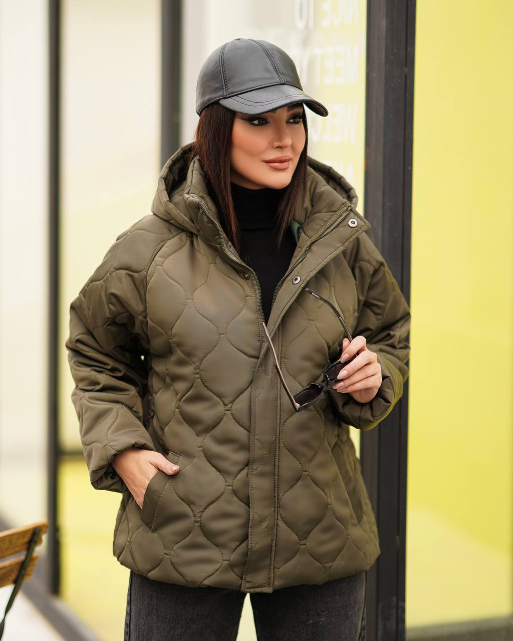 کاپشن زنانه کلاهدار امبوردی مموری بلند