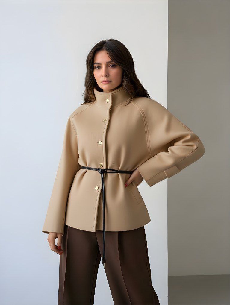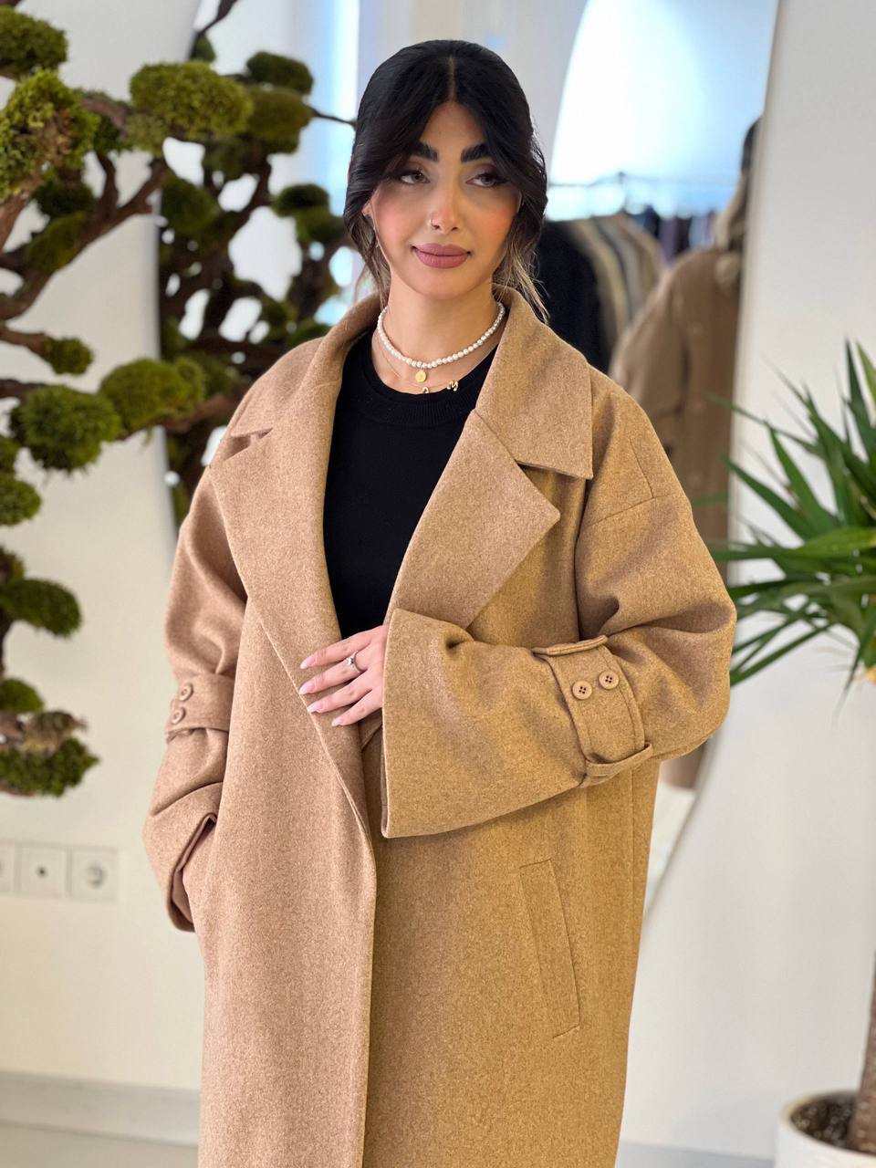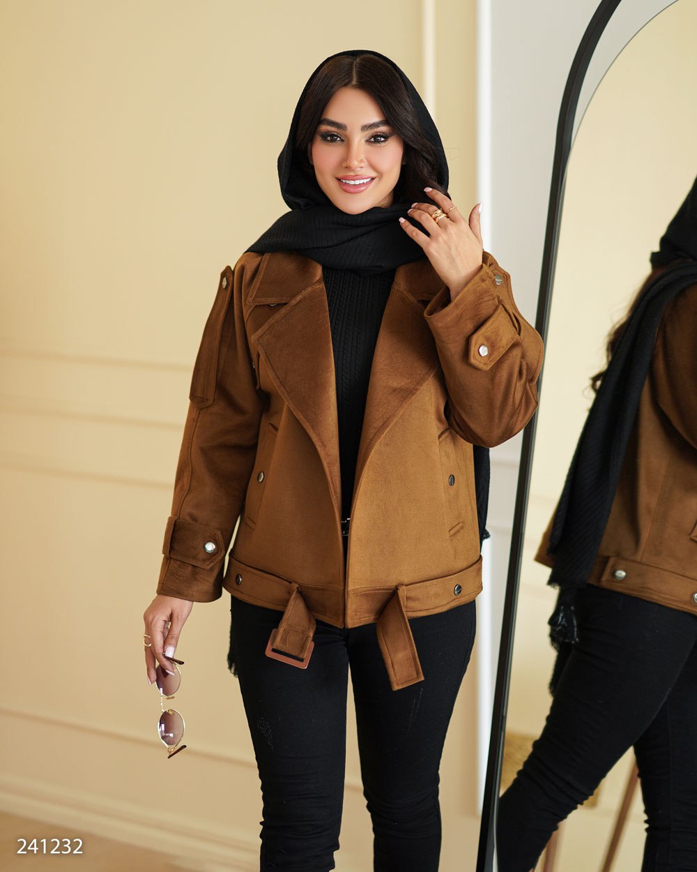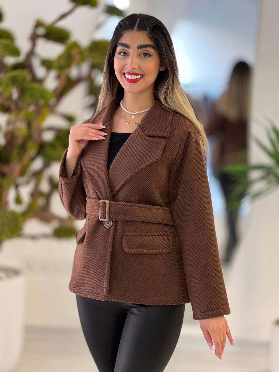 کت فوتر دورو کوبیده زنانه با کمربند چرم