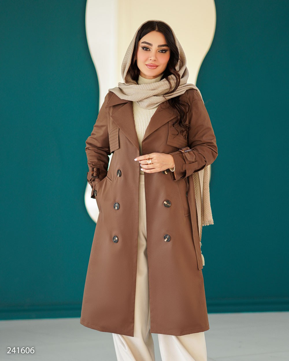 ترنچ کت زنانه جنس پردا پشت بلدینگ