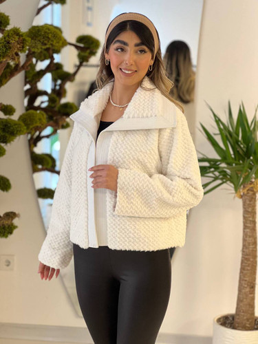 پالتو کوتاه پوست ترکیبی یقه چرم
