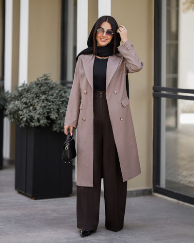 ناموجودمانتو زنانه کالکشن بهار ندا بیسکوییتی سایز بزرگ