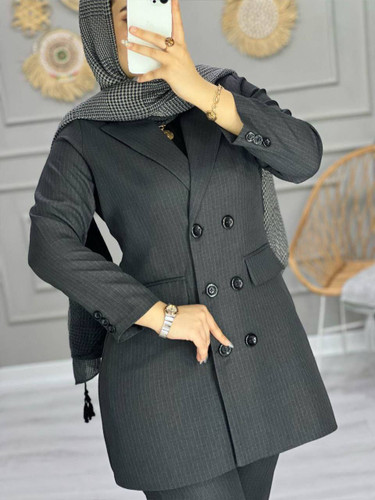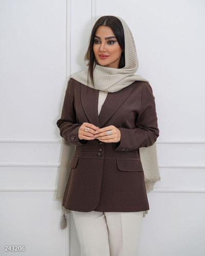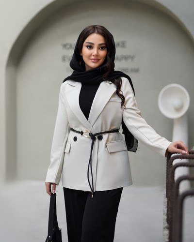 کت زنانه دو دکمه به همراه کمر بند چرم