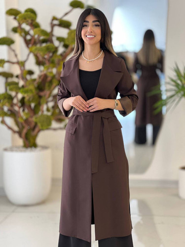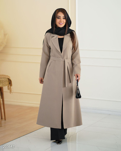 مانتو کتی زنانه بهناز به همراه کمربند چرمی