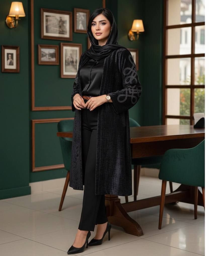 مانتو عبایی زنانه مخمل راه راه مجلسی