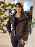 پالتو کوتاه پوست ترکیبی یقه چرم