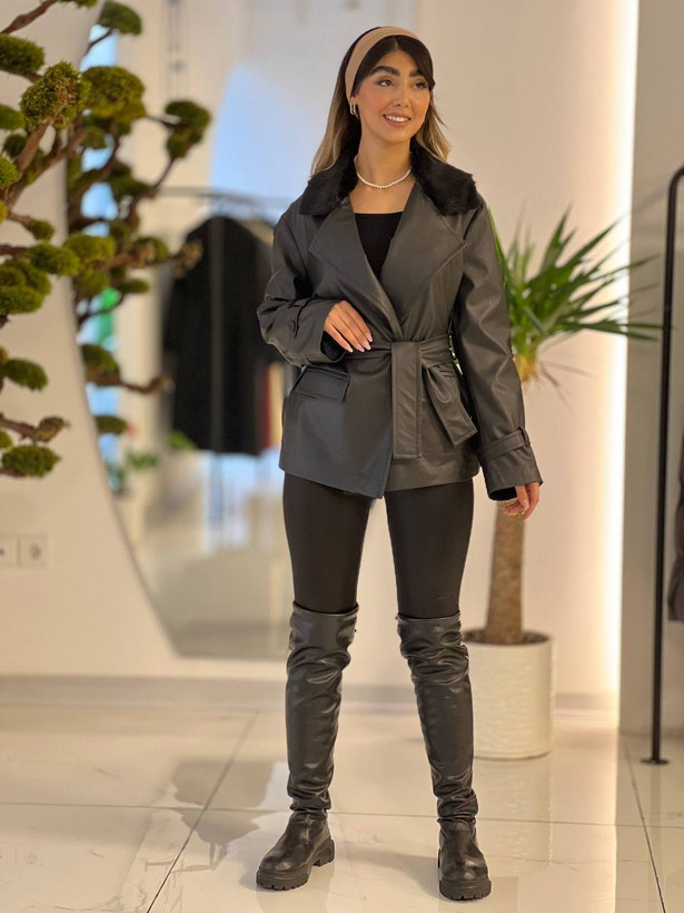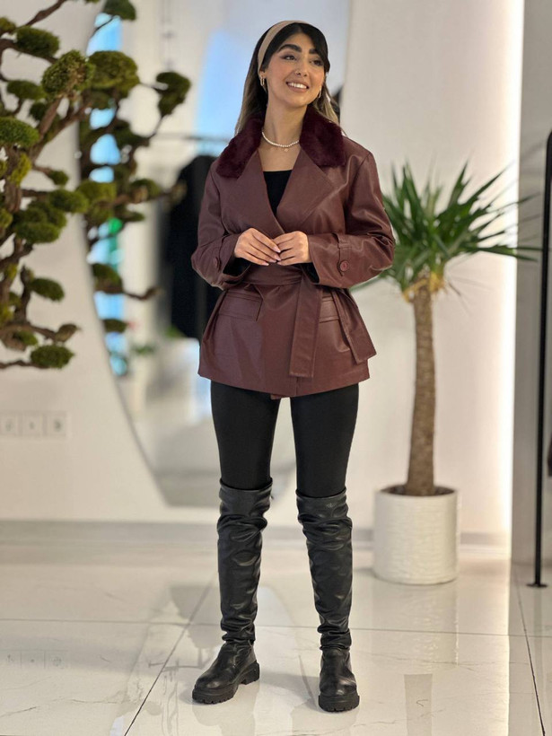 پالتو چرم یقه خز مزونی