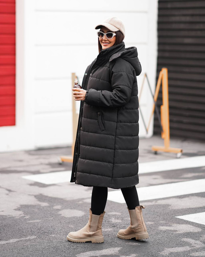 کاپشن زنانه کلاهدار امبوردی مموری بلند