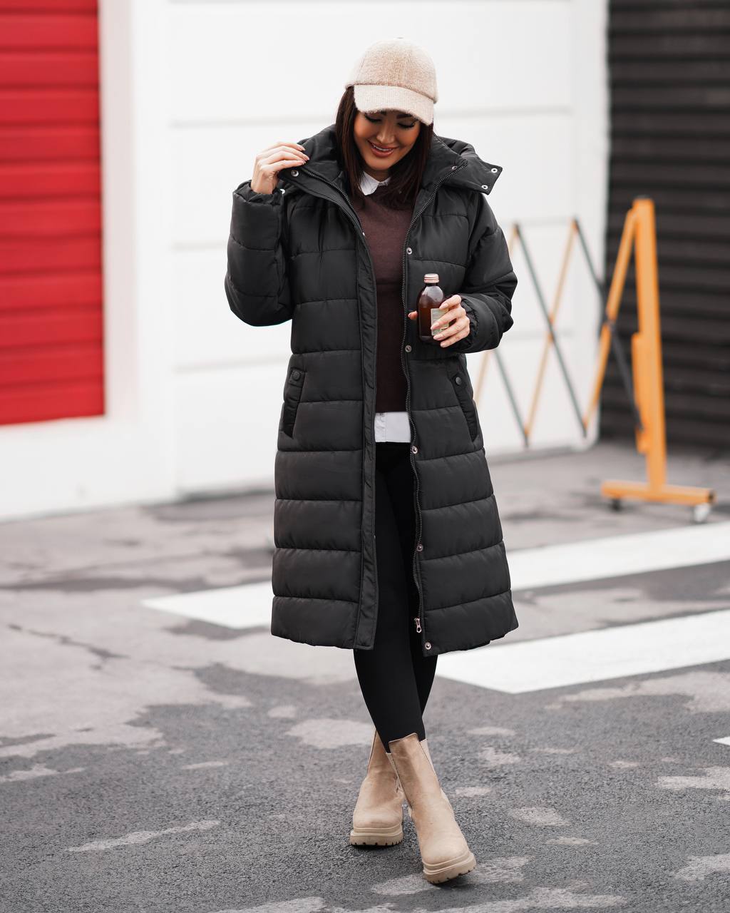 کاپشن زنانه کلاهدار امبوردی مموری بلند