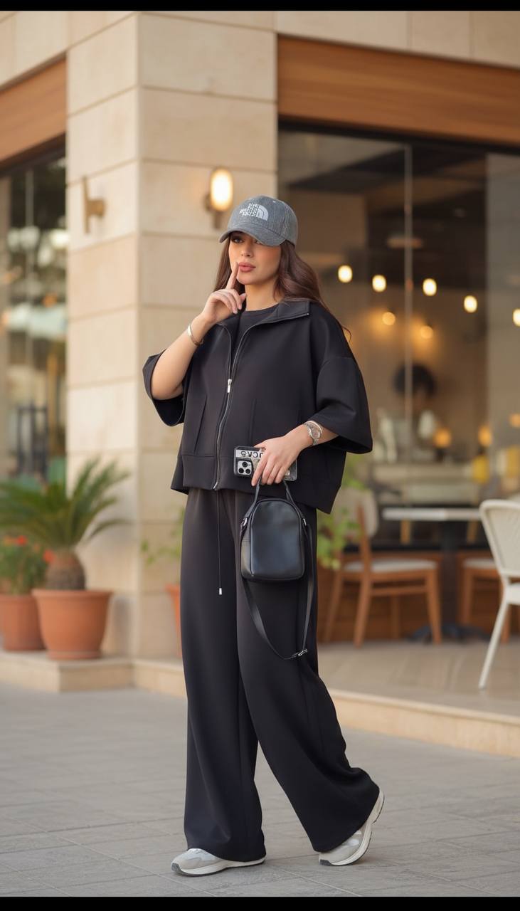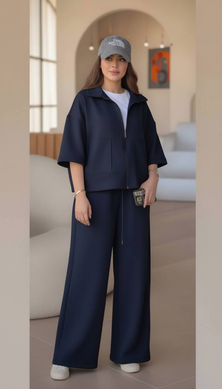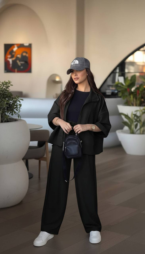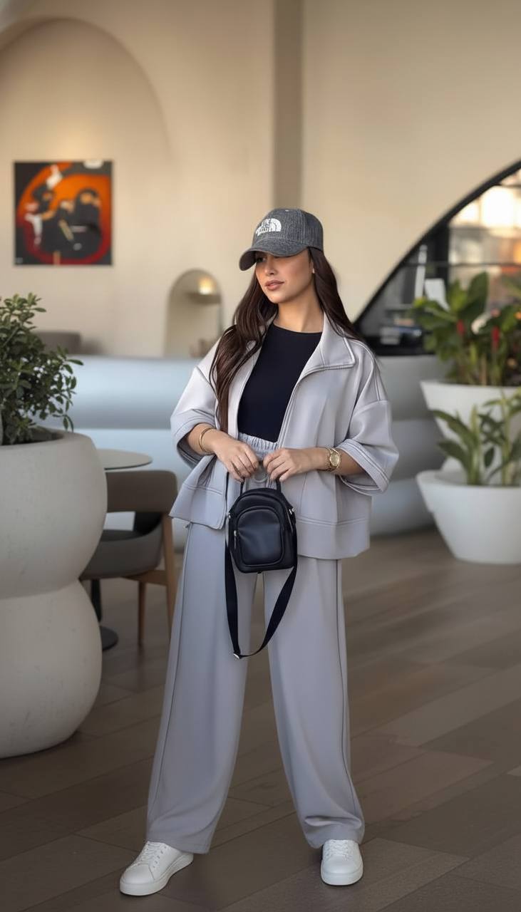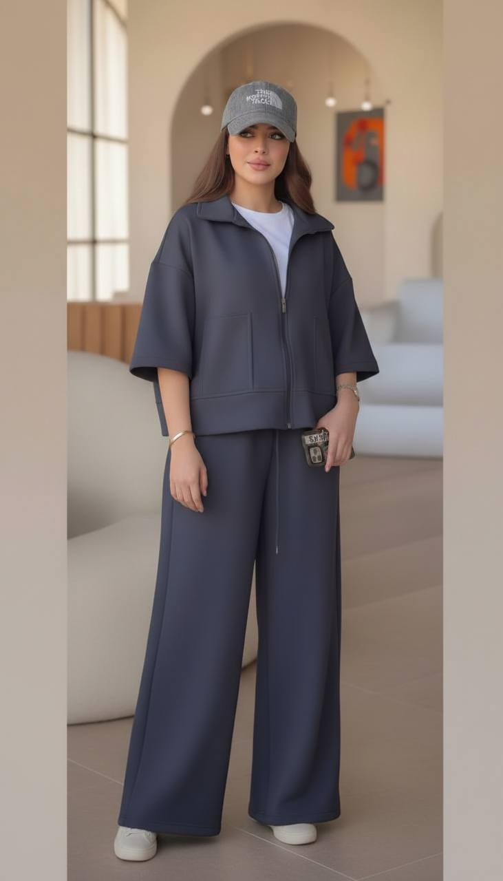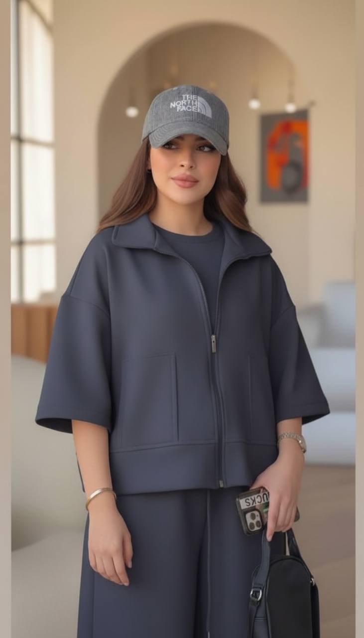ست دوتیکه سویشرت و شلوار با جنس کتان مخملی ترک