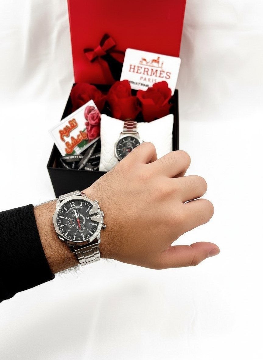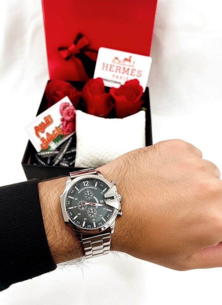 ساعت مردانه دیزل نقره ای صفحه مشکی