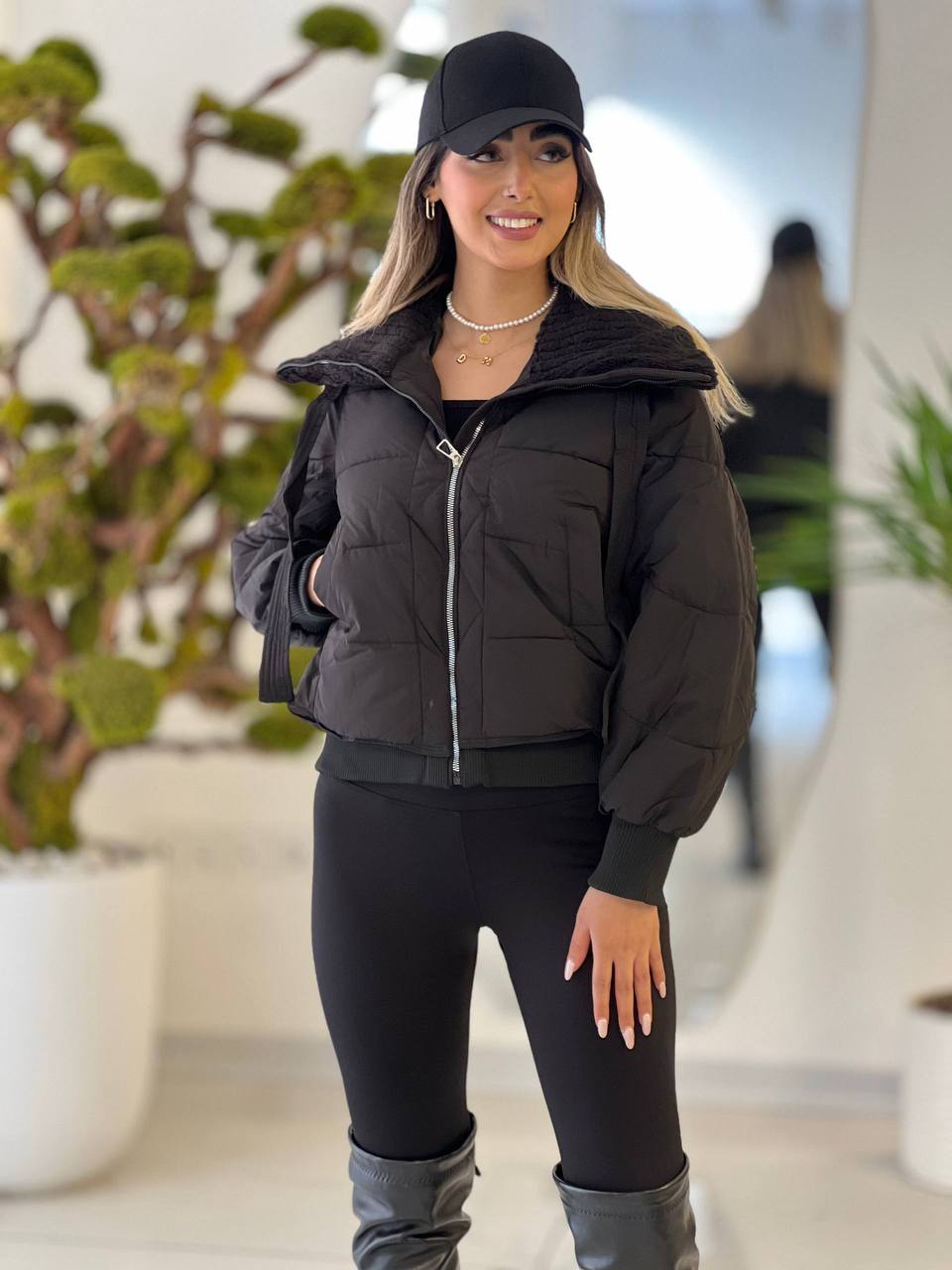 کاپشن زنانه نیم تنه یقه تدی