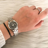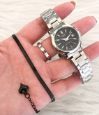 👚نام : ست ساعت کاسیو زنانه صفحه مشکی همراه با دستبند و حلقه نقره ای