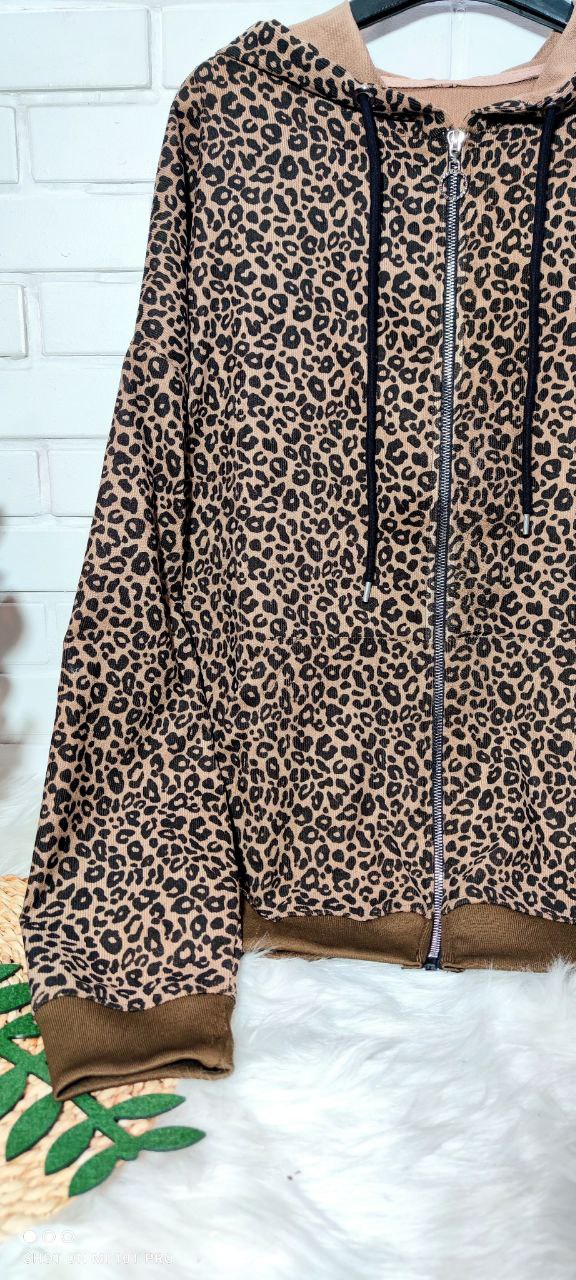 هودی کلاهدار ترند پلنگی با مخمل کبریتی