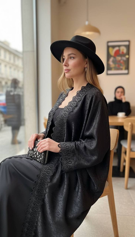 مانتو عبایی زنانه گیپور و ژاکارد