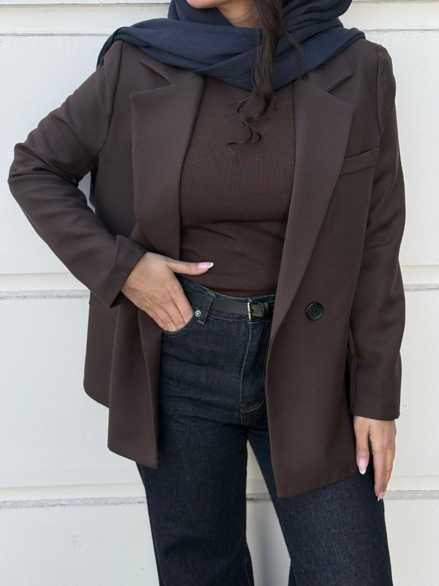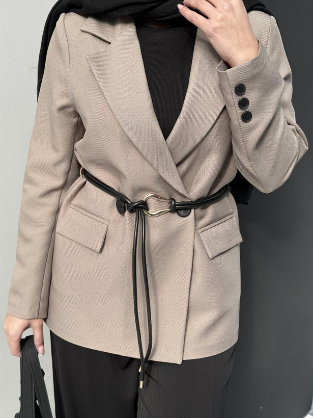 کت زنانه دو دکمه به همراه کمر بند چرم