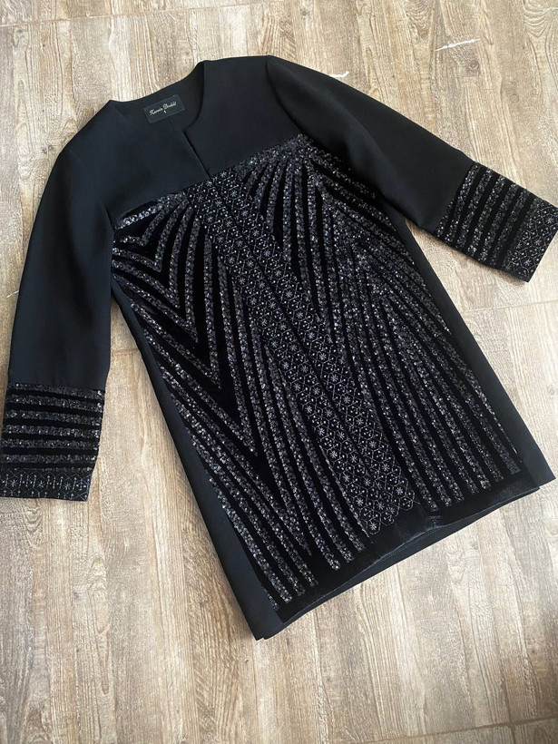🔶 جزئیات: طراحی منحصربهفرد با پنلهای مخمل سوزندوزی بافته شده روی جلوی کت و آستینها؛ دارای قزن مخفی (تنخور عالی 🅰️ - تضمین کیفیت دوخت مزونی 🅰️)