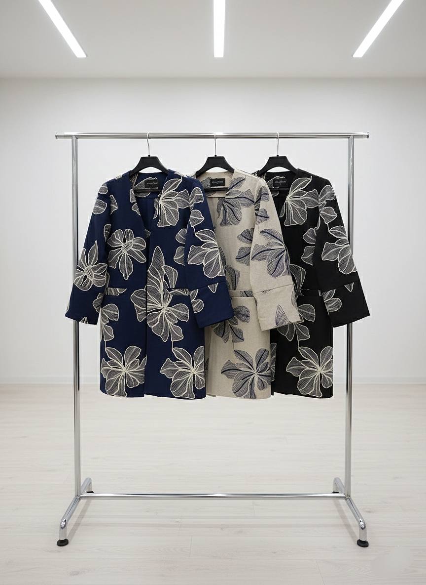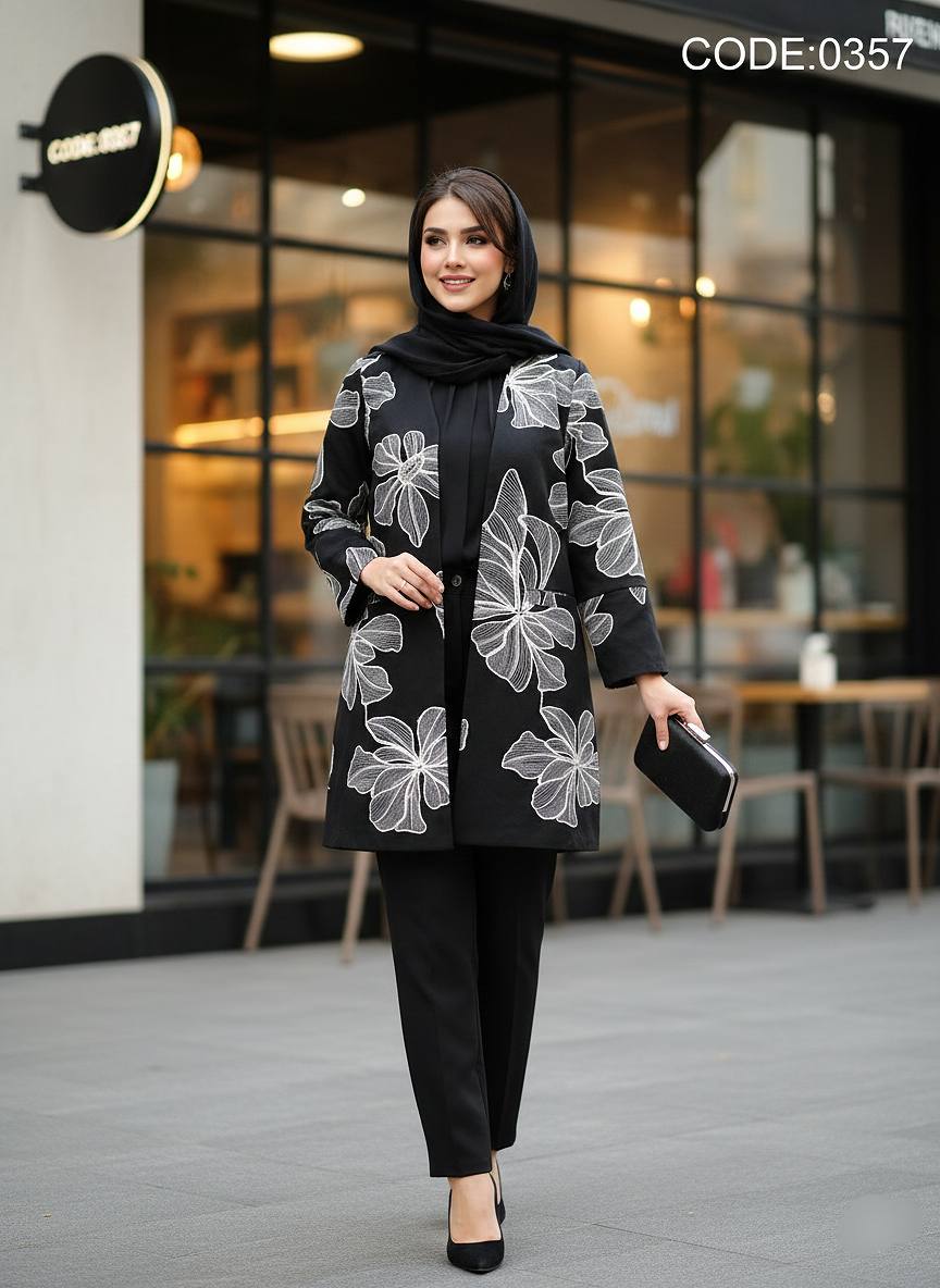 اگر به دنبال استایلی هستید که وقار و تمایز شما را در نگاه اول به رخ بکشد، این کتی شاهکار دقیقاً برای شما طراحی شده است. طراحی منحصربهفرد با گلدوزیهای برجسته و درشت، تضادی بصری ایجاد کرده که نهتنها چشمنواز است، بلکه به اندام شما فرمی شکیل و کشیده میبخشد.