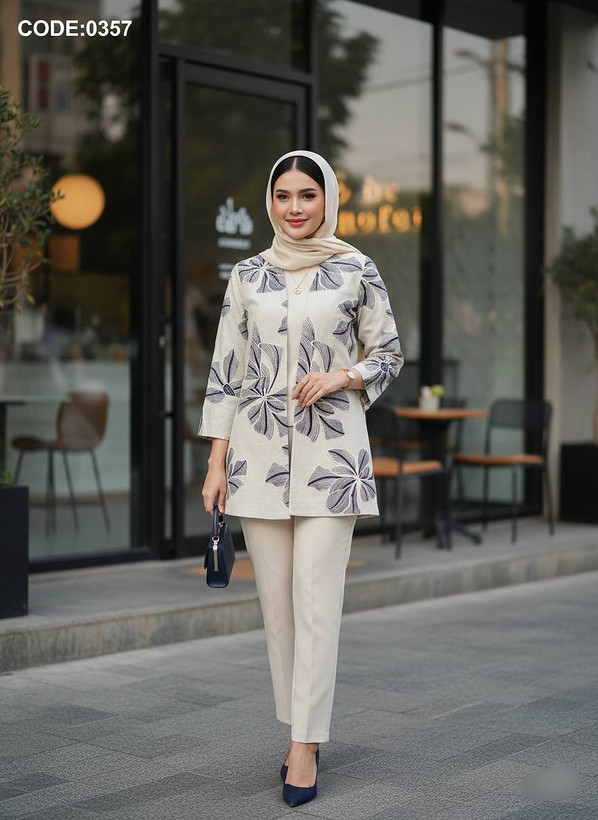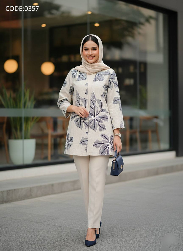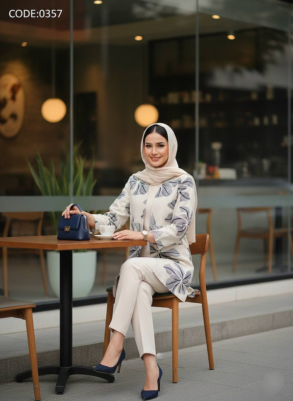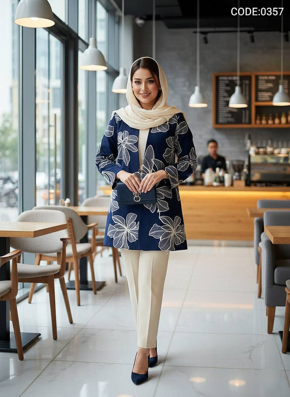 • 🎨 پالت رنگی: * سرمهای تیره: تضاد خیرهکننده با گلدوزی نچرال.