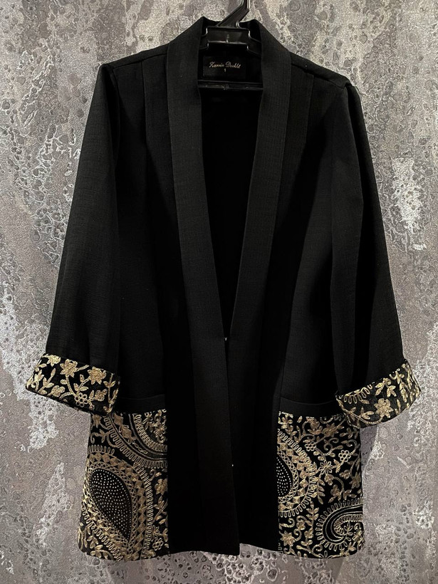 🔶 جزییات: طراحی منحصر به فرد با خرجکار مخمل گلدوزی شده با طرح های اسلیمی روی جیب ها و سر آستین ها دارای قزن مخفی(تنخور عالی 🅰️ -تضمین کیفیت دوخت مزونی 🅰️)