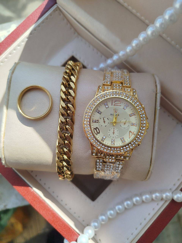ساعت مارک رولکس فول نگین همراه با دستبند کارتیر و حلقه ساده